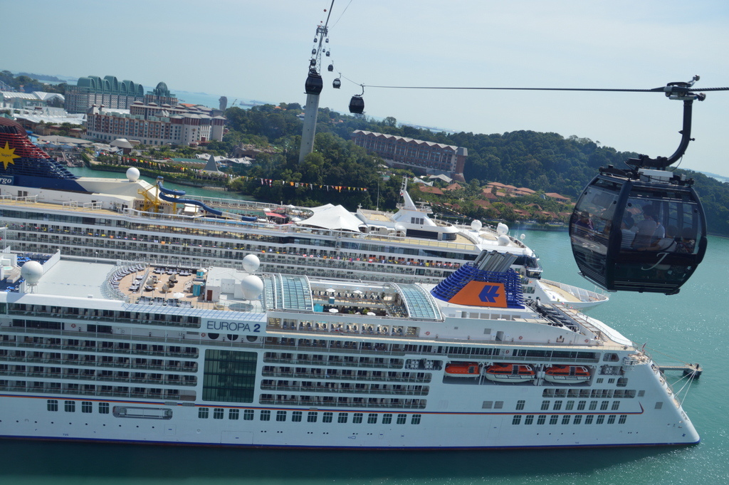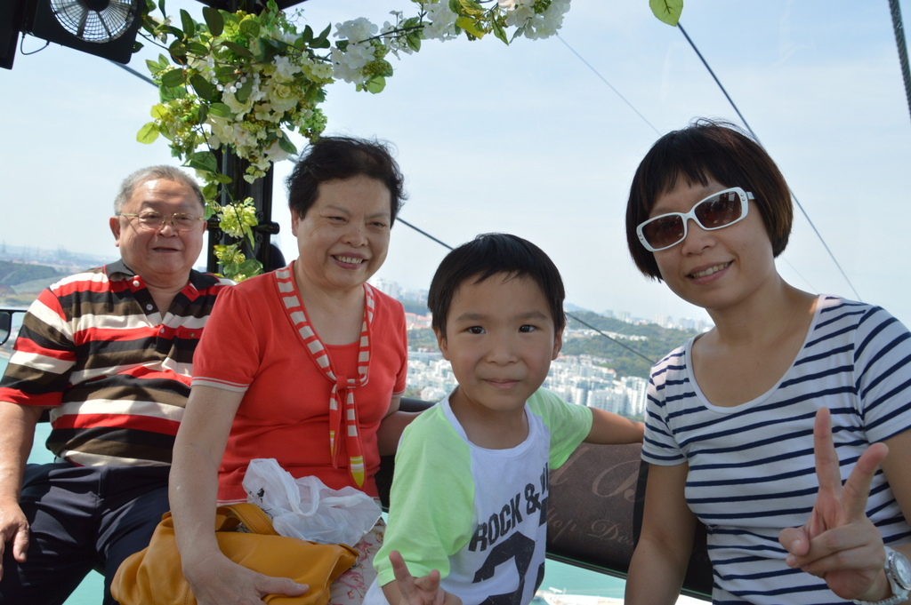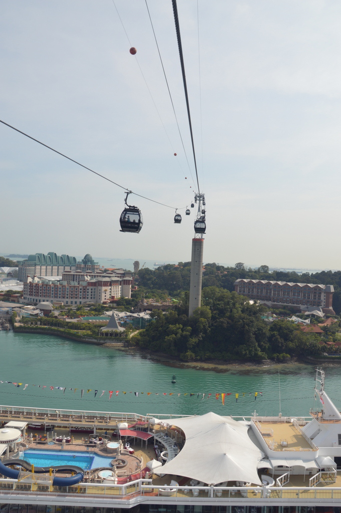 下午搭聖淘沙島上的魚尾獅公園附近玩, 還搭纜車來回聖淘沙島及本島看風景。