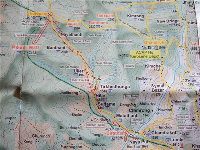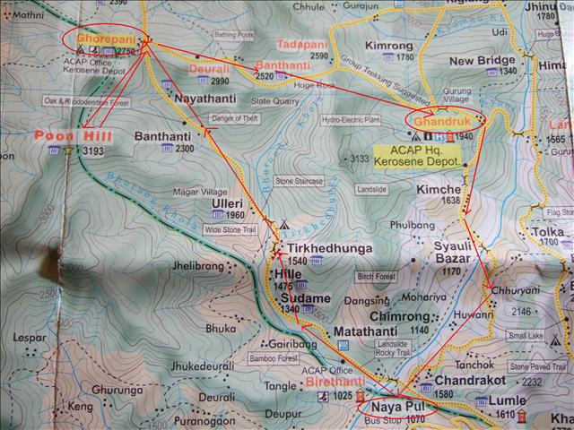 行程計畫由Nayapul開始, 經Tirkhedhunga至 Ghorepani