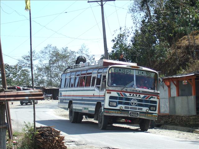 Sunil帶我們搭上當地漆滿華麗顏色的巴士到Khare (1770m)